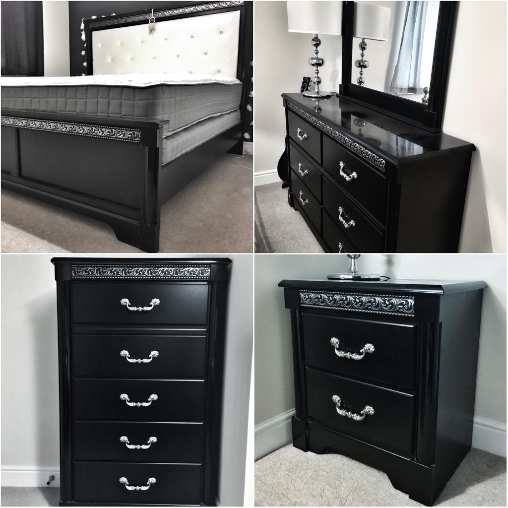 Images. Furniture in perth region, wa. Matching or very similar wardrobe, chests of drawers, desk, bedside table and open cupboard for sale.